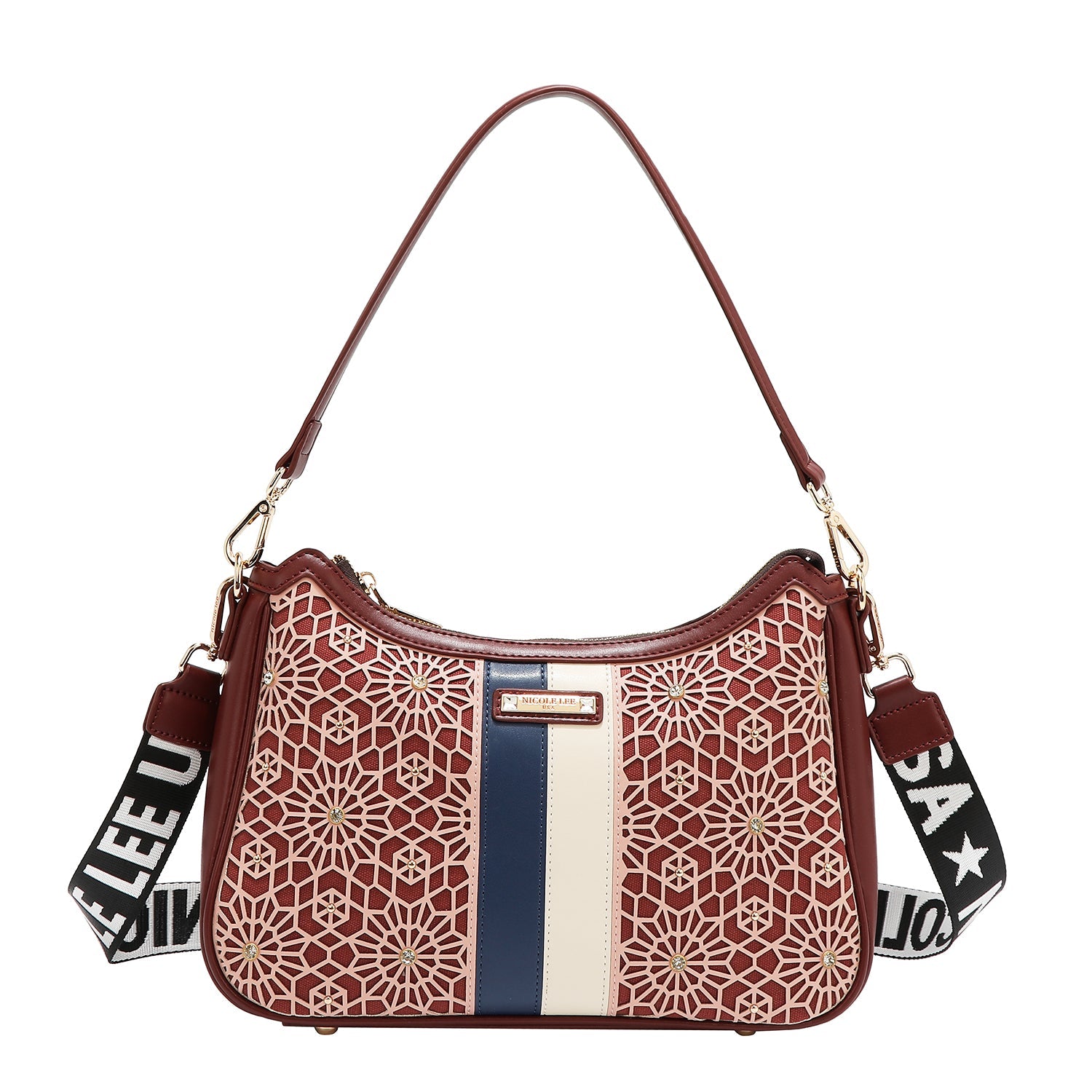 GEOMETRIC LASER CUT SHOULDER BAG (VINO)